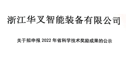 喜報(bào)|浙江華叉榮獲2022年度浙江機(jī)械工業(yè)科學(xué)技術(shù)獎(jiǎng)一等獎(jiǎng)